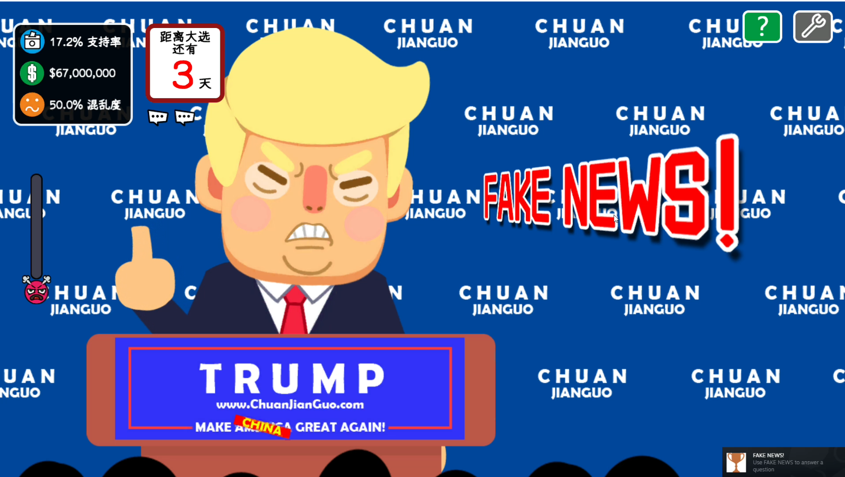 遊戲看似諷刺政治, 其實只是想表逹大部份人看到的也只是表面. 遊戲發現原來有針對性的新聞就避, 到記者會避無可避, 就講個誇張的例子, 讓大眾自己思考. 因為大部份人(包括自己), 若果直接講個答案, 大眾就不認同自己蠢而反駁, 相反用開放式答案, 佢哋仲會認為自己很聰明估到背後發生甚麼事. 但是現實明明都係同一件事, 只是表逹方式不同吧.